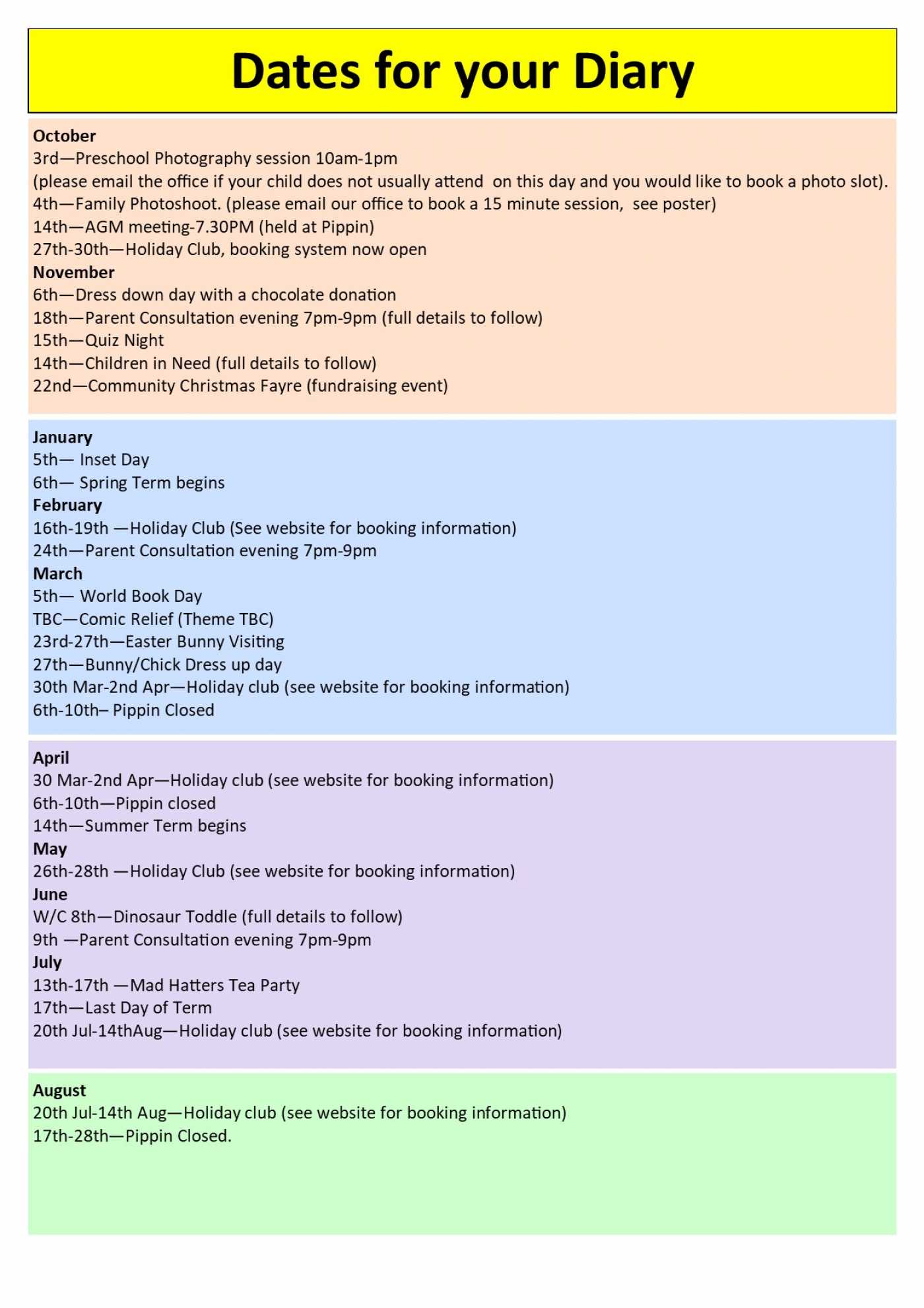 Dates for your Diary